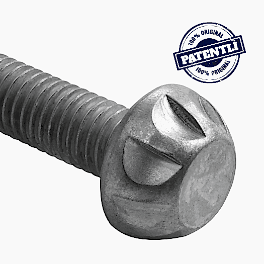 Yüksek güvenlikli patentli tek yönlü güvenlik civatası. Bu patentli kalıcı civata, montaj için uygun bir anahtar soketi gerektirir.